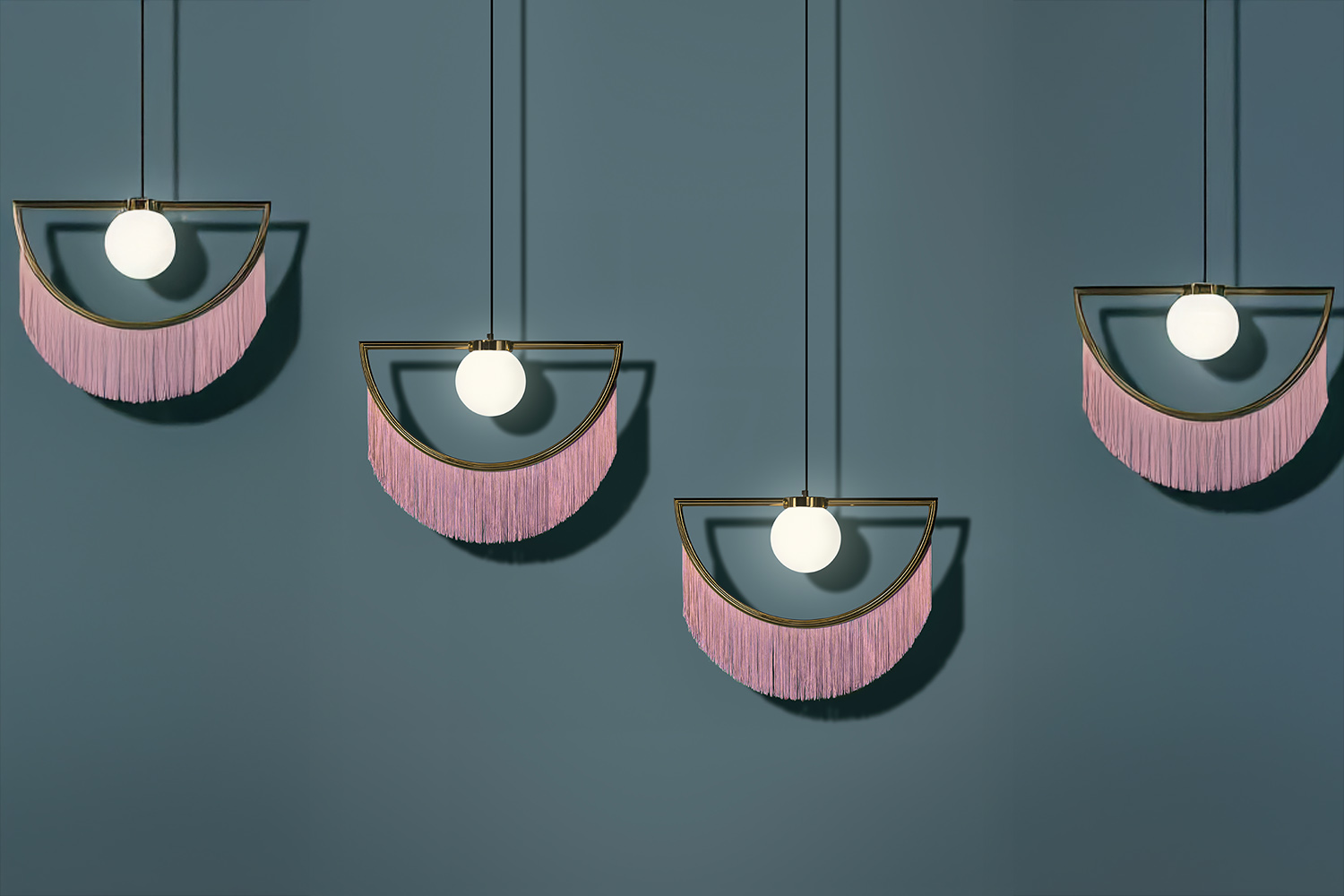 "Wink Lamp" im modernen Boudoir-Stil der 30er-Jahre mit Fransenbehang: Die extravagante Hängelampe aus Spanien erinnert an ein auf dem Kopf stehendes Auge, das uns elegant zuzwinkert.