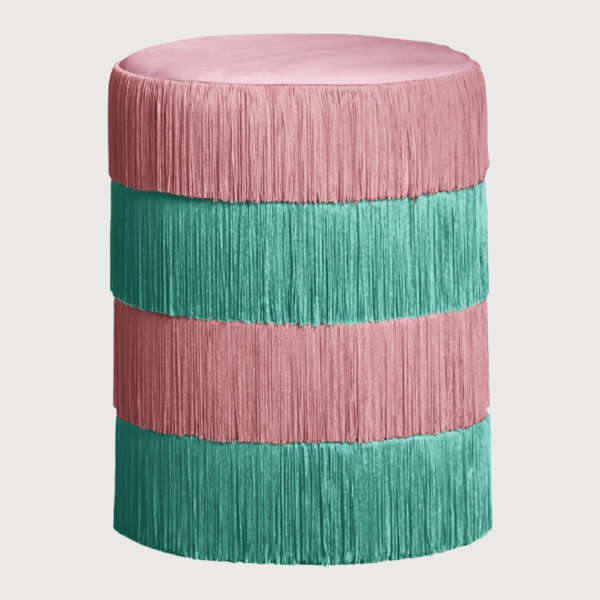 Materialien: innen Holz, gepolstert mit Samtbezug, Textilfransen