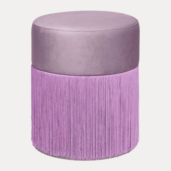 "Pouf Pill S" im modernen Art Déco-Stil mit Fransenbehang: Der extravagante Samt-Hocker aus Spanien ist Sitzgelegenheit und Deko-Objekt zugleich.