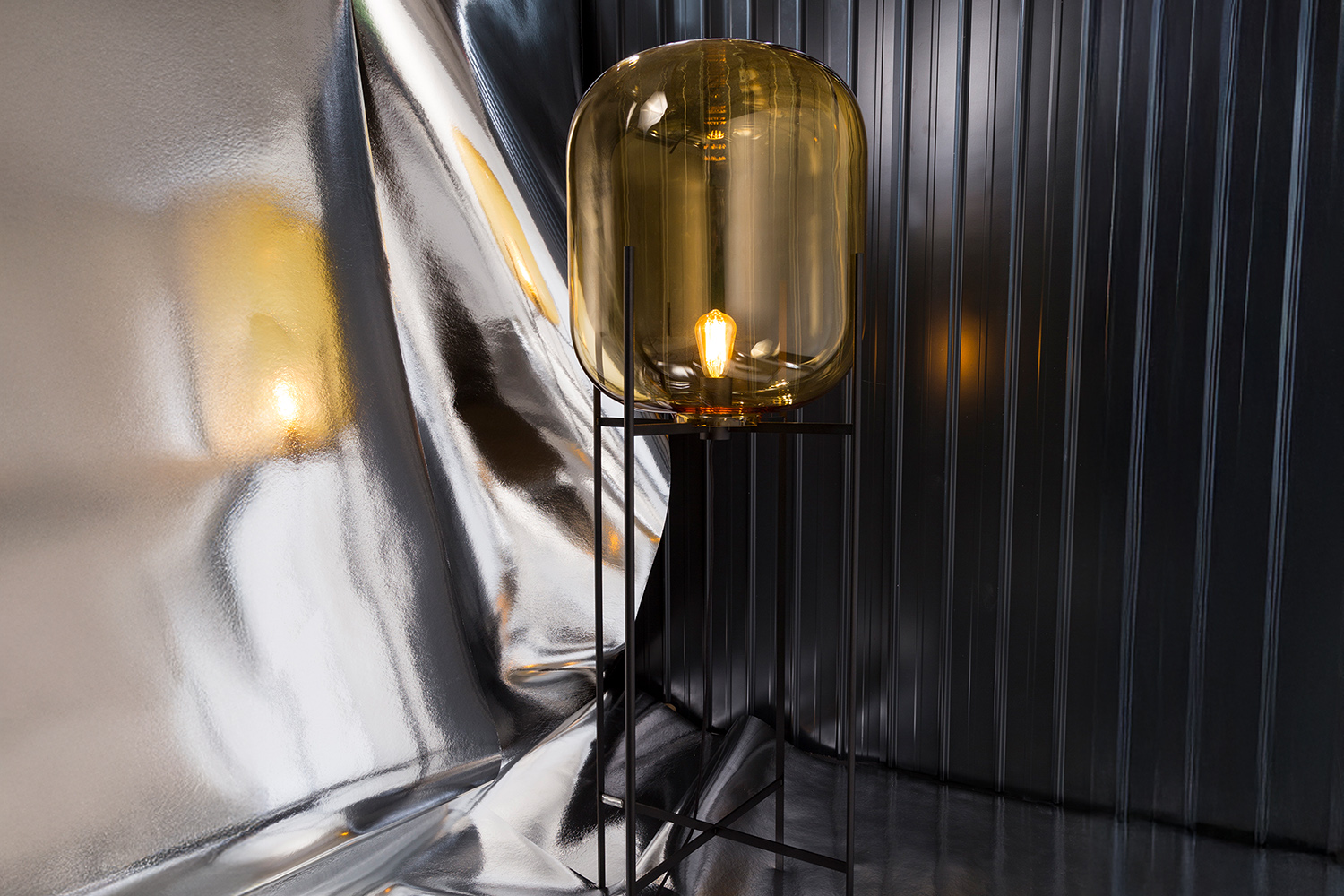 Materialien: mundgeblasenes Glas, pulverbeschichteter Stahl