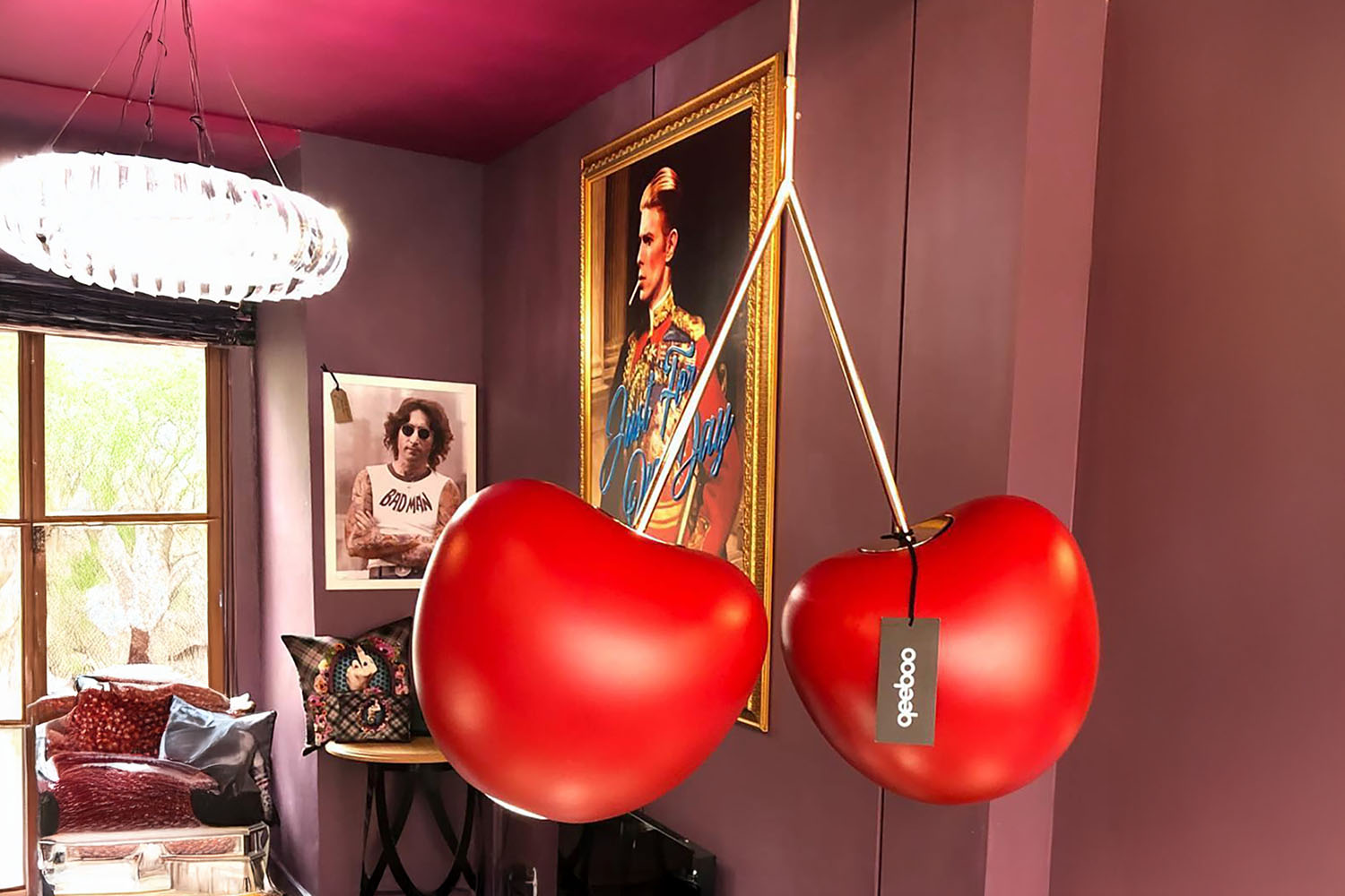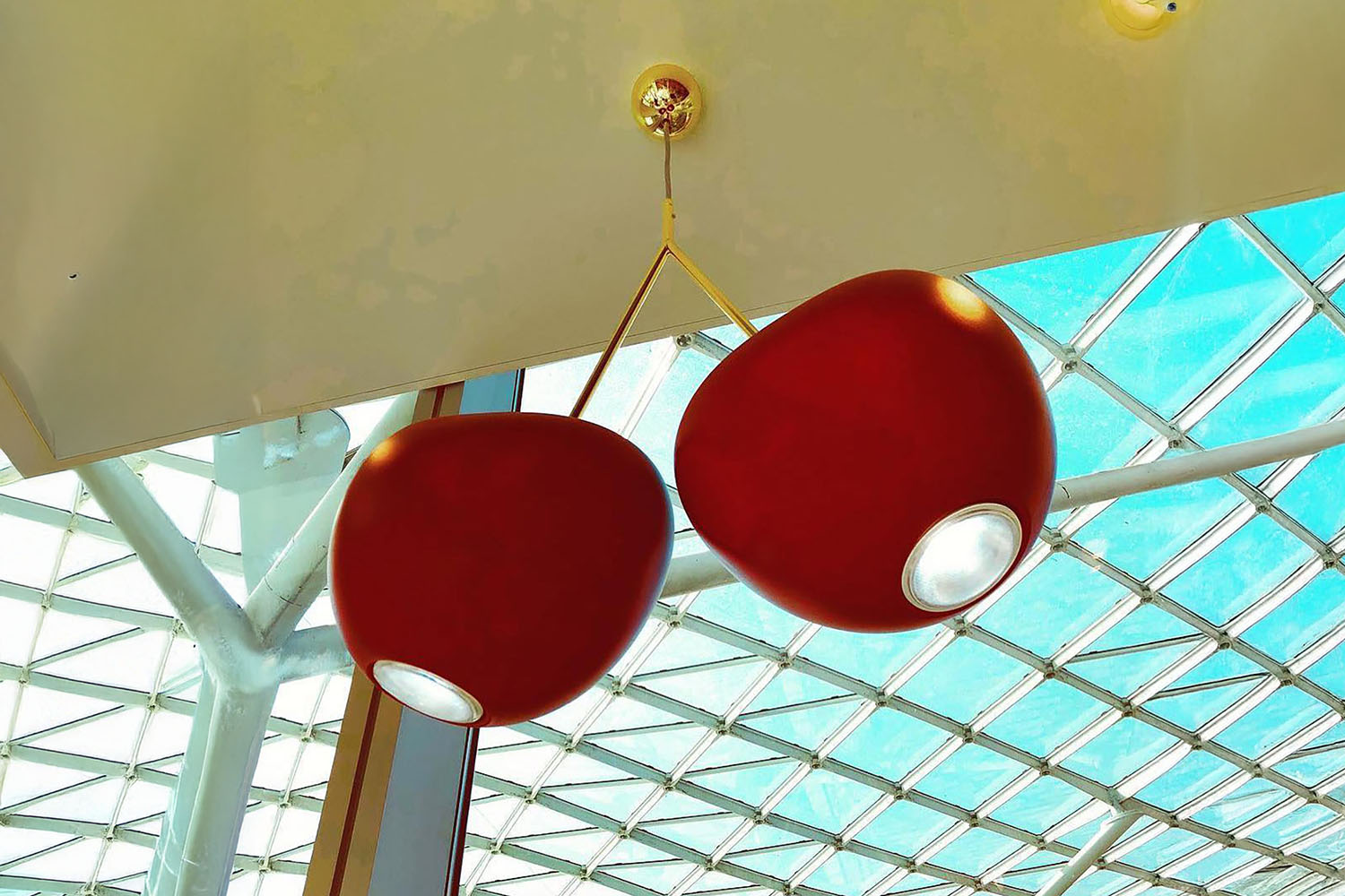 Zwei Lampenschirme mit jeweils einem Leuchtmittel auf der Unterseite
