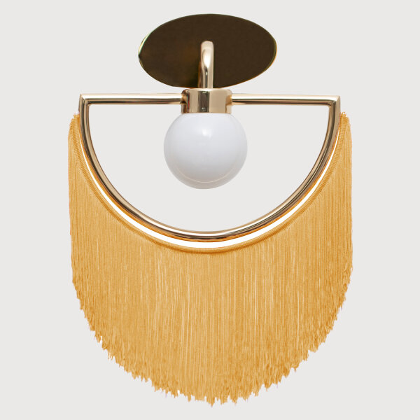 Materialien: mit 24 Karat vergoldetes Metall, Textilfransen, Glas