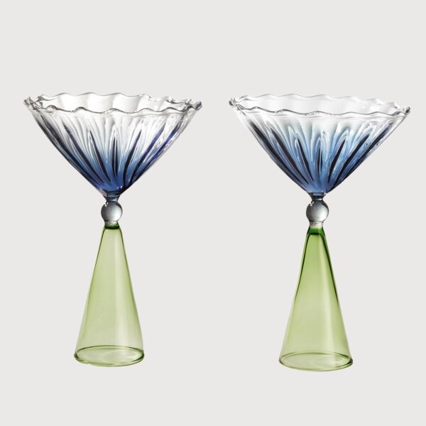 Jedes Glas ist ein handgefertigtes Einzelstück, das hier als 2er-Set verkauft wird