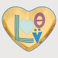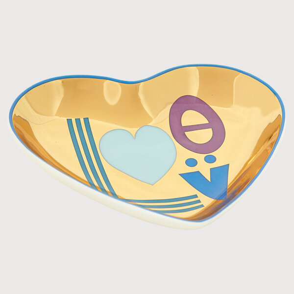 Love, Peace & Happiness: Herzförmige Ablageschale aus Porzellan mit goldfarbenen Akzenten und graphischer Love-Typographie von US-Designstar Jonathan Adler