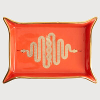 Glamouröser Eyecatcher von US-Designstar Jonathan Adler: Orangefarbene Ablageschale aus Porzellan mit vergoldeten Details und Schlangen-Motiv