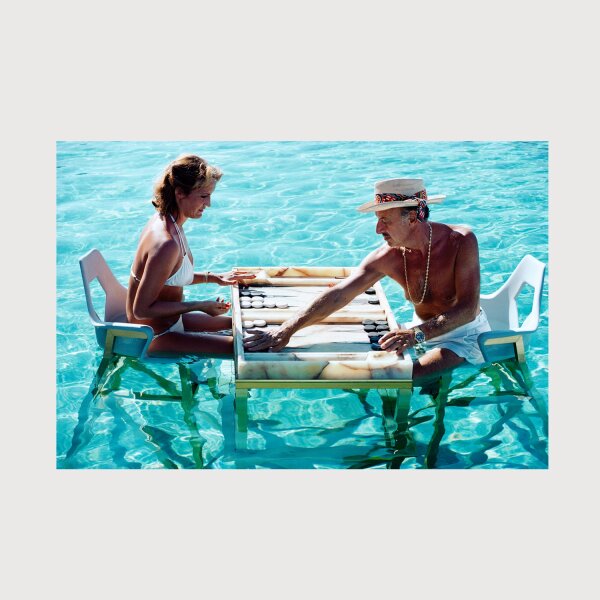 Lässig und glamourös zugleich: Der Jetset-Fotograf Slim Aarons porträtierte 1970 Carmen Alvarez und Frank 'Brandy' Brandstetter bei einer Partie Backgammon im Pool in Acapulco